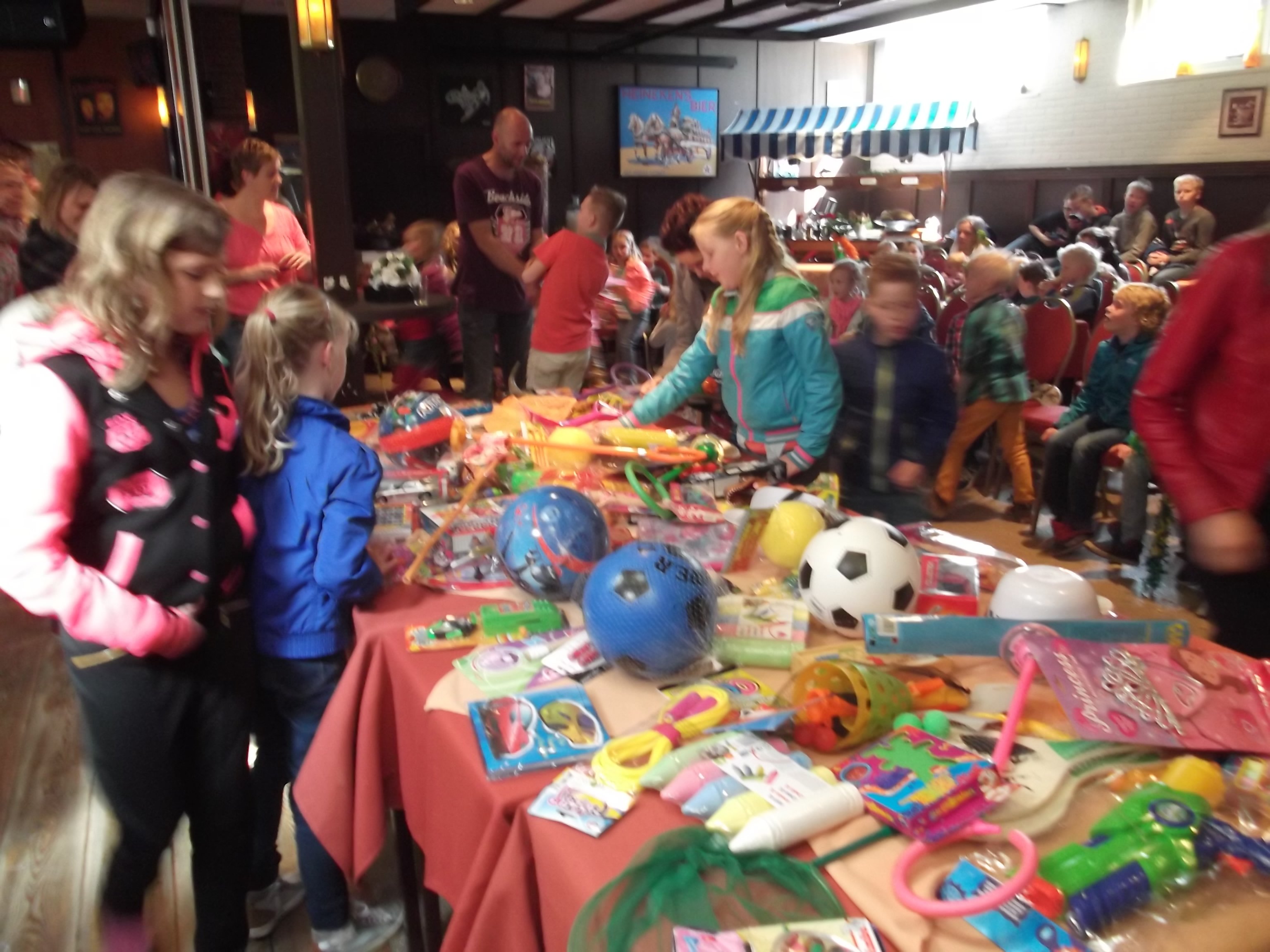 Alle kinderen mochten een cadeautje uitzoeken van de cadeautafel (1e prijzen eerst en daarna de volgende groepen) en met tevreden gezichten gingen alle deelnemers naar huis.