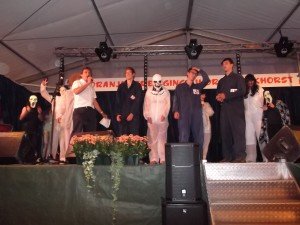 Nadat er nog gelegenheid was voor iedereen om even aan de bar na te babbelen werd de tent gauw weer in gereedheid gebracht voor het avondprogramma.