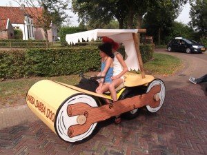 Natuurlijk was er op zaterdagochtend weer de traditionele optocht met versierde wagens. Ook dit jaar gaf dat weer een bonte stoet met 16 wagens en een 18-tal individuele deelnemers en groepen. Het was wel weer duidelijk dat er veel werk was verzet om mooie creaties te presenteren en gelukkig was het dit jaar droog!! De jury had het niet makkelijk om de mooiste uit te kiezen en zo de prijzen te bepalen, maar hakten uiteindelijk toch de knoop door.